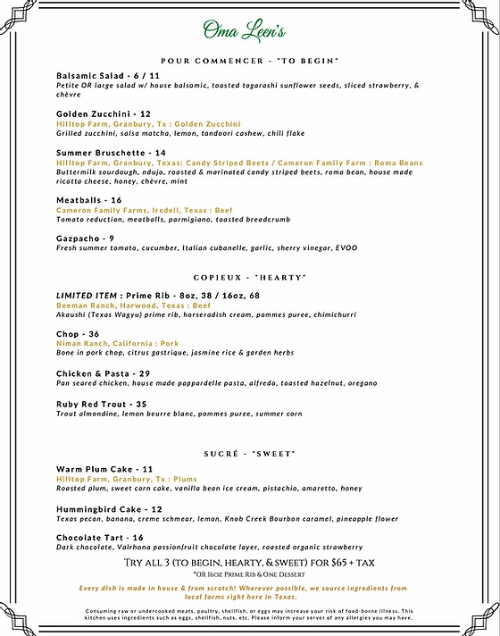Oma Leen's Menu